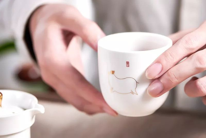 温润的杯面,似偷了梨蕊的三分白,映着金线勾勒成的灵物,分外可爱俏皮。