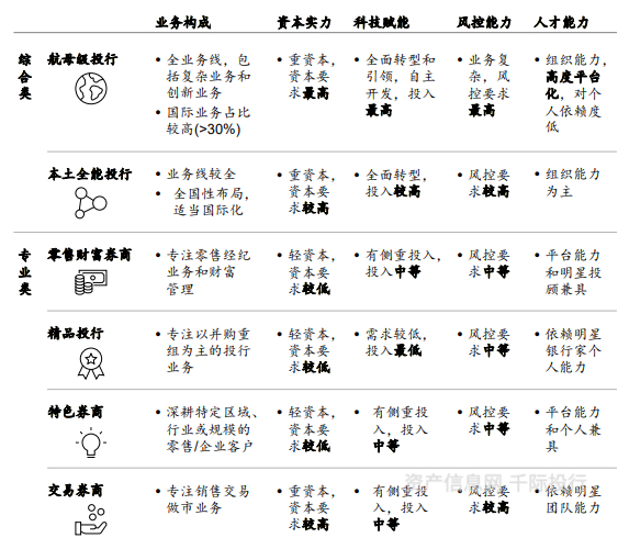 图券商选择不同的发展路径,能力建设方向也有所差异