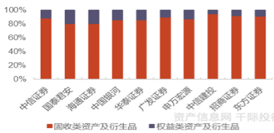 近年来证券行业向“重资产化”转型,资金实力与投资能力成为了券商的核心竞争力。券商自营配置仍以固收类为主。