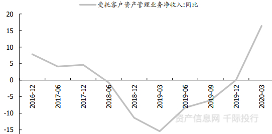 自营业务:从资产端来看,券商总资产中45%以上为自营投资类资产,包括固收、股票、基金、信托及资管计划、衍生品等,其中绝大部分投向固收资产(2019年自营投资占比在65%左右)。自营仓位变动:股票市场表现较好时,券商自营会加仓权益类规模,相反,会减仓权益类资产规模;结构分化:一般来说,固收类投资占比较高的券商业绩整体表现更加稳健;但权益类占比较高的券商在牛市时可能会获得更高的业绩弹性。
