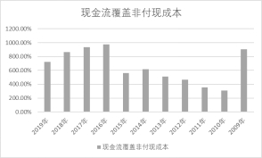如果想要外部少融资,自身必需具备强大的造血能力,经营活动现金流就是一家企业的造血功能,经营活动现金流净额有能力覆盖维护性资本支出,我们可以用一个指标来刻画公司这种造血能力,经营活动现金流净额/非付现成本(资产减值准备+计提折旧+计提摊销+长期待摊费用+处置固定资产、无形资产和其他长期资产的损失)。