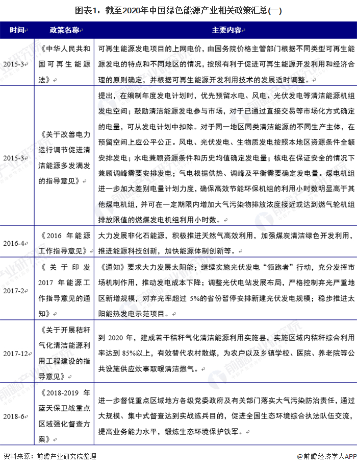 原标题:重磅!2020年中国绿色能源产业及各细分领域政策汇总(全) 来源:前瞻产业研究院