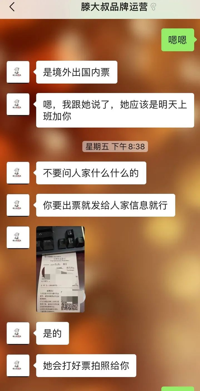“做二检的人才挣钱,收着客户全价票的钱,出折扣票。一张要挣一千多元。”“滕大叔品牌运营”称。