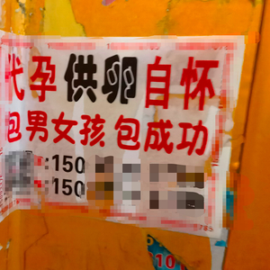 1月20日,新京报记者在河南郑州走访发现,除了社交网站,“代孕”、“供卵”的小广告,贴到了医院和商场的厕所里。郑州某高校的女生介绍称,这类小广告在高校宿舍和厕所里也比比皆是,小广告上印者“供卵、代孕、包生男女”的字样,下面留着联系电话和微信。