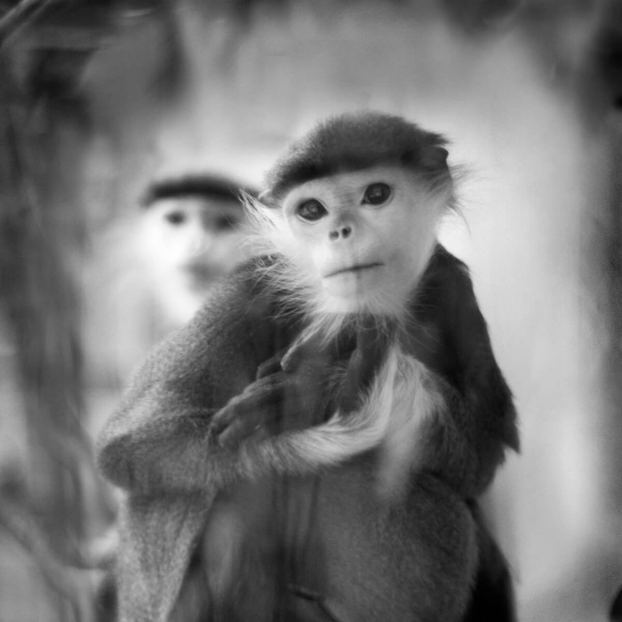 “‘玻璃的背后’是一系列拍摄于欧洲小型动物园中灵长类动物的肖像。孤独、耐心和沉默,在小小的猴子笼舍内,我与被拍摄对象建立了一种超越连接的关系。肖像揭示了不同动物的独特个性,显而易见的是,它们的姿势是自发的‘摆拍’,此时存在着人类与灵长动物之间的纽带。拍摄此系列的目标是鼓励人们对于灵长类动物抱有同情心,意识到人类是有义务去保护它们的。