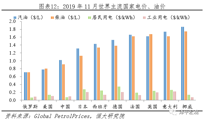 需求端:欧洲人对新能源汽车接受度更高,其燃油经济性更强。相比中国,欧盟在发展新能源汽车方面有几大优势:1)欧洲人环保意识强,偏好紧凑型车,新能源汽车接受度高,2018年欧盟A00、A0、A型小轿车合计占比41%;2)欧洲推广电动汽车经济性更强,按照纯电动乘用车电耗每100km消耗15kWh,工业/居民用电各50%,乘用车汽油车、柴油车占比60%、40%,每100km耗油7.5L计算,使用纯电动车每100km美国、中国、日本、德国、法国、英国车企可分别节约4.04、5.97、5.61、6.83、9.93、9.03美元。