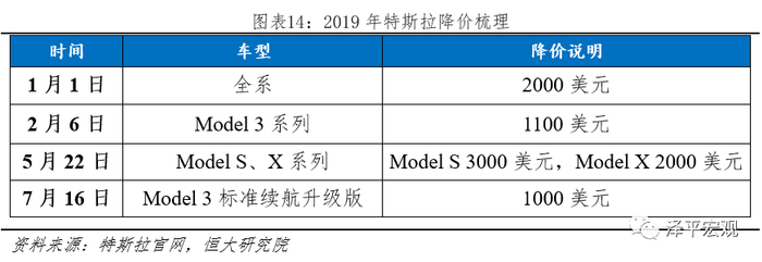为抵御税收减免冲击,2019年1-7月特斯拉四次降价。以特斯拉为例,其2018年底在美国累计电动车销量超过20万辆,从2019Q1开始,其单车税收减免从7500美元减少到3750美元;自2019Q3开始,其单车税收减免从3750美元减少到1875美元;2020Q1税收减免取消。为抵御税收减免下调带来的购置成本增加,特斯拉分别在2019年1月、2019年2月、2019年5月、2019年7月四次降价。