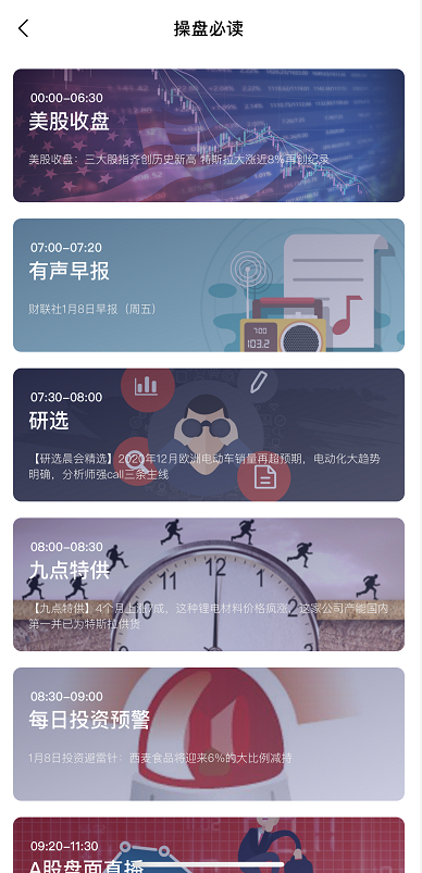 操盘必读:独创时间流展现形式,通过固定资讯栏目,梳理时间段市场大事件,助投资者在盘前掌握时事以及实时的资讯动向。