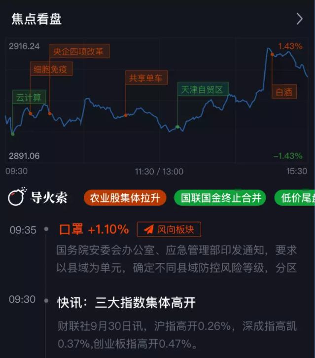 改版升级后的「盯盘」频道聚合了盘面直播、北向资金、大涨股解读、异动导火索等功能,以科技赋能高效整理凌乱盘面,直击要害,助力投资者迅速反应,辅助交易决策执行。