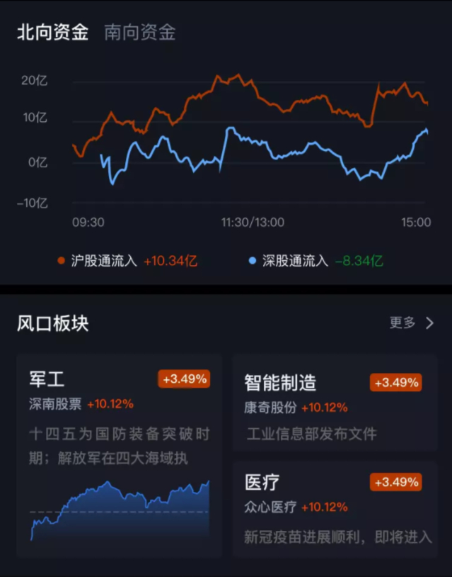 北向资金:实时追踪“聪明钱”的动向,通过直观化的图形,让投资者对当下市场资金走向变化一目了然。