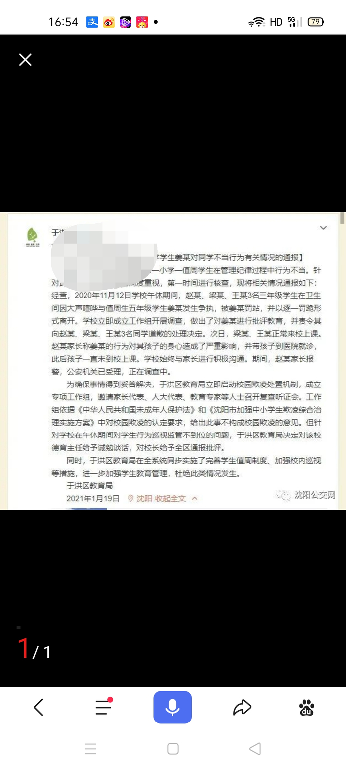 1月19日凌晨,于洪区教育局在网上发布了相关《通报》。