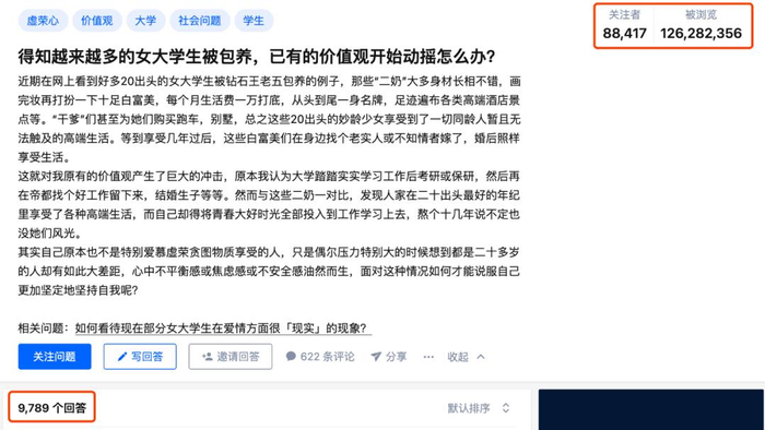 “得知越来越多的女大学生被包养,已有的价值观开始动摇怎么办?”