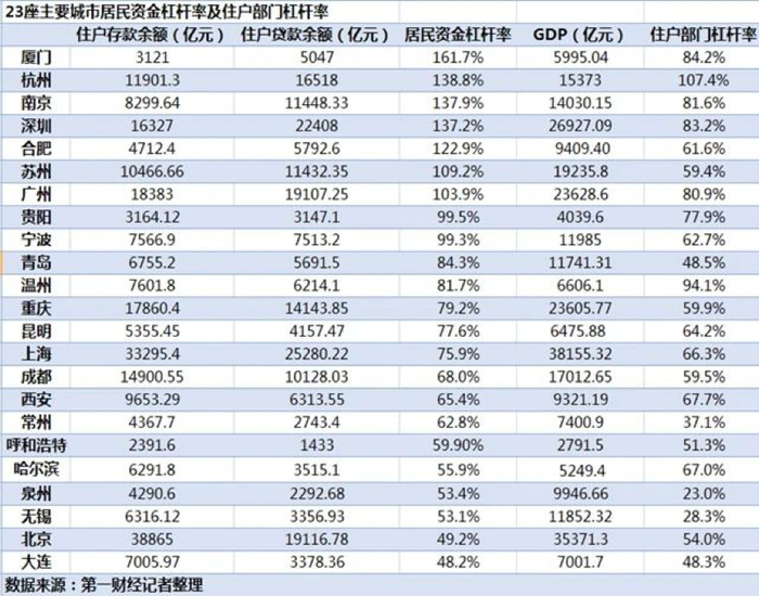 去年8月,第一财经对23个重点城市的杠杆率进行了梳理。
