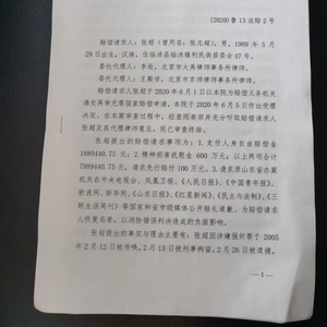 2020年6月,张志超委托律师向山东省高院提出788.9万余元国家赔偿。