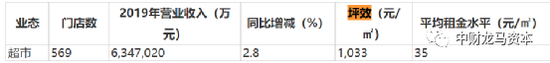 根据物美发布的债券募集说明书中透露的业绩情况,物美业绩一直处于增长的状态,营收保持了六年增长,2019年收入429.77亿元,归母净利润23.74亿元,分别增长4.01%、13.92%。物美科技集团主营超市、百货、家电、家居建材零售等多个板块的业务,从收入占比来看,2019年超市业务收入占比最大,为64.92%,百货业务收入占比6.67%,家电业务收入占比3.34%。