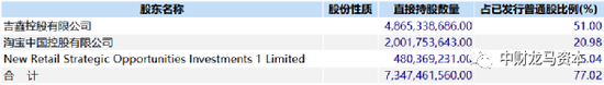 根据公司2020年10月21日公告,阿里拟通过子公司淘宝中国向欧尚国际及其附属子公司Monicole BV收购吉鑫约70.94%股份,交易对价约280亿港元(36亿美元)。吉鑫系高鑫零售控股股东,持有高鑫零售约51%股权,目前交易双方已经订立买卖协议,并将在相关协议的先决条件满足或豁免后进行交割。本次收购前,阿里通过淘宝中国与New Retail Fund直接持有高鑫零售26.02%的股权,并持有吉鑫19.9%的股份,阿里合计持有高鑫零售约36.17%的权益。本次收购后,阿里系将合计获得高鑫零售约72%的权益,阿里对高鑫零售形成控股并将并表。