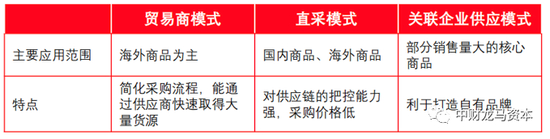 图表 三种商品采购方式:贸易商代采、直采和关联企业供应