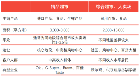 图表 精品超市和综合超市、大卖场的区别