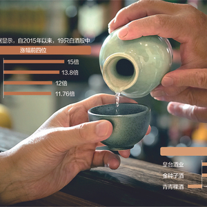 Wind数据显示,自2015年以来,19只白酒股中,山西汾酒、五粮液、贵州茅台、泸州老窖分别上涨15倍、13.8倍、12倍、11.76倍,在所有白酒股中涨幅为前四。相比之下,青青稞酒、金种子酒、皇台酒业等三四线白酒分别上涨-23%、33%、92%,在所有白酒股中垫底。