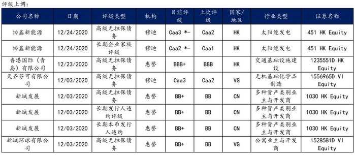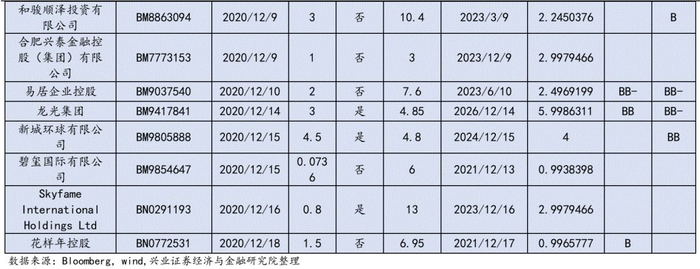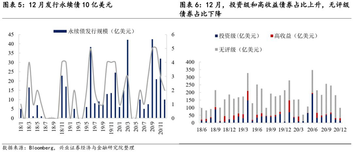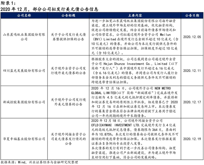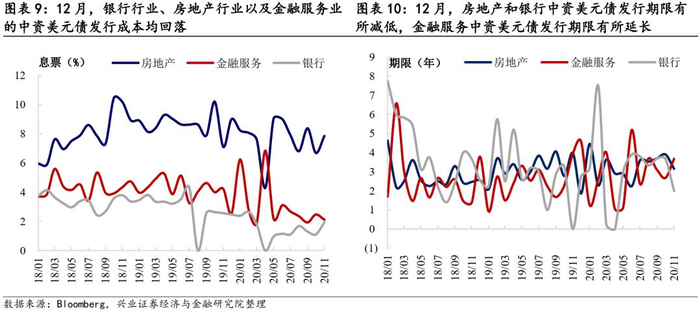 4)一级市场情绪来看,平均息票率水平方面,12月银行业、房地产行业以及金融服务业的中资美元债发行成本均有所回落;房地产和金融服务行业中资美元债发行期限有所减低,银行业中资美元债发行期限有所延长。