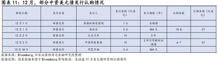 一、中资美元债一级市场:12月中资美元债发行量有所回落