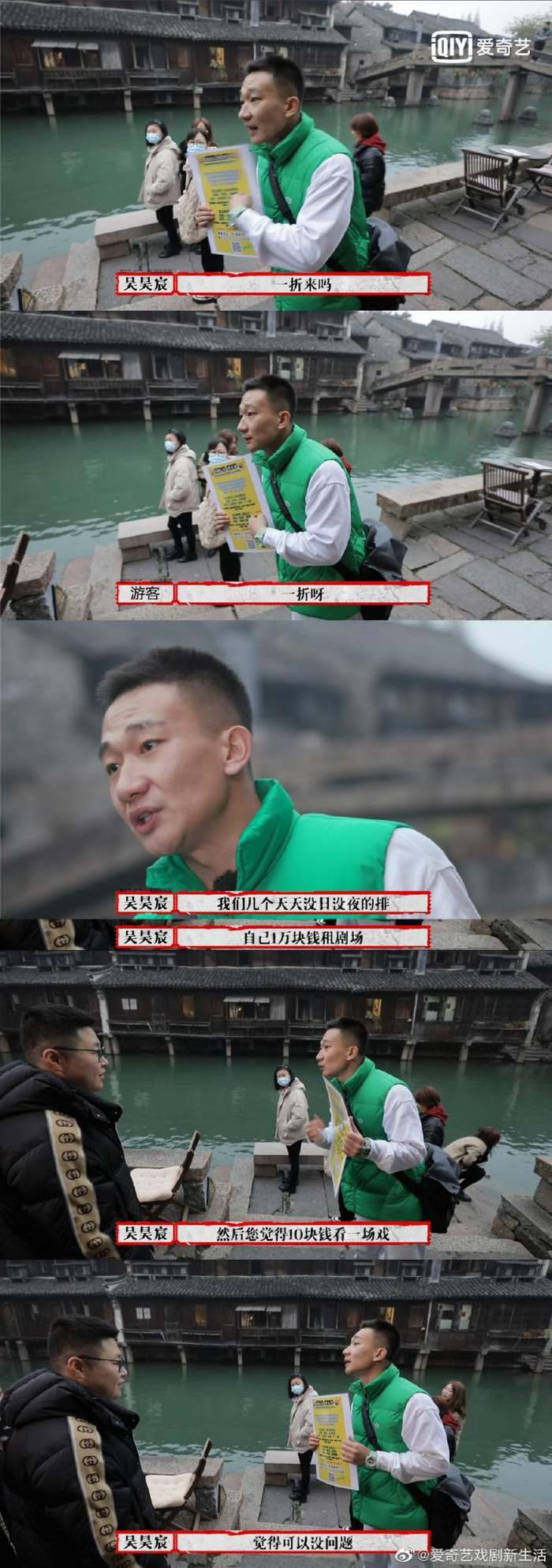 第二期里,戏剧人进行自负盈亏的售票演出。虽然用了人情关系,但租一天剧场还是得一万块,两组戏剧人一天得各演五场,非常高强度地工作,才能争取把租金给赚回来。最令人心酸的一幕是,吴昊宸等人负责售票,但屡屡被拒绝。有时一场戏剧一百元一张的票甚至都没有办法卖出一张,为了不让自己的兄弟面对空场演,吴昊宸最后只能让路人看着给——只要你走进去看。