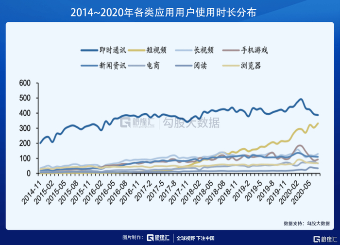 根据快手公司招股书显示,2020年上半年,快手App的平均月活为4.85亿人,平均日活为2.58亿人。若加上小程序及快手极速版用户,则快手整体月活规模为7.76亿人,日活3.05亿人。字节跳动方面,其官方宣布,截至2020年1月抖音App的日活超过4亿。新入局的微信视频号发展迅猛,自2020年2月开始扩大内测规模,6月视频号宣布日活超过2亿。