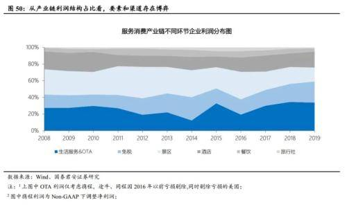 本地生活服务产业链要素端天然低集中度、产品发展阶段的不成熟,能够在线上销售的产品和服务以无差别消费品为主。团购大战时期,消费者对渠道的品牌认知度和认可度均高于要素,由此导致消费者在行业发展初期更信任平台,商业信用的价值分布利于平台渠道,因此本地生活服务平台具有很强的产业链议价能力趋势性提升,产业链利润分布占比亦随之提高。