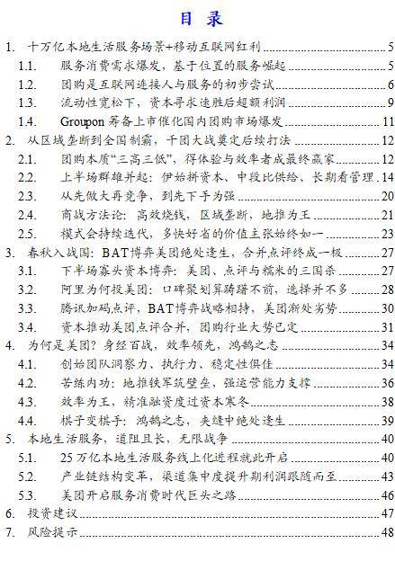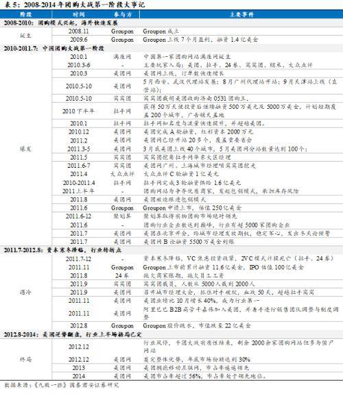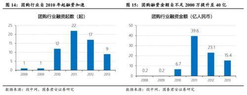 Groupon筹备上市催化国内团购市场爆发。海外新兴行业龙头Groupon的诞生与筹备上市对国内团购市场爆发催化作用明显。上市意味着商业模式的可行性得到验证,也意味着产业链相关企业的发展成熟。彼时“时间胶囊”理论仍然有效,中国互联网企业仍处跟随、模仿美国互联网龙(港股00777)头的模式阶段,Groupon的上市极大提升的资金对团购模式可行性的信心。