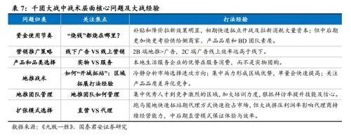 商战方法论:从区域垄断到全国制霸,千团大战奠定后续打法。服务业区域割据,是从区域垄断到全国制霸的持久战:①烧钱方法:同质化竞争C端无粘性,补贴拉新效果明显,但留存和复购比拼供给侧;②地推战术:小城市垄断供给,大城市争夺需求,区域形成优势后交易量迅速上涨,农村包围城市有效且资金使用效率高;③团队管理:集中优秀人才,狠抓拜访率;④直营VS代理开城:跑马圈地期代理快速抢占市场,但代理商持续经营能力弱,中后期直营保证体验与效率;⑤团购最终商业模式与最初变化很大。但围绕价格、品类、品质、效率提供“多快好省”消费体验的价值主张始终是迭代的方向。