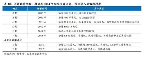 2015年11月10日,美团和大众点评正式公布了新公司的组织架构:合并后美团+点评在团购领域的市占率合计超80%,行业格局已定。腾讯通过投资大众点评后与美团换股以及跟投美团,对美团合计持股份额超10%,超越阿里,美团正式从阿里阵营转投腾讯阵营。尽管后续阿里与蚂蚁金服共同出资60亿元重启口碑网,但美团点评作为行业龙头优势明显。
