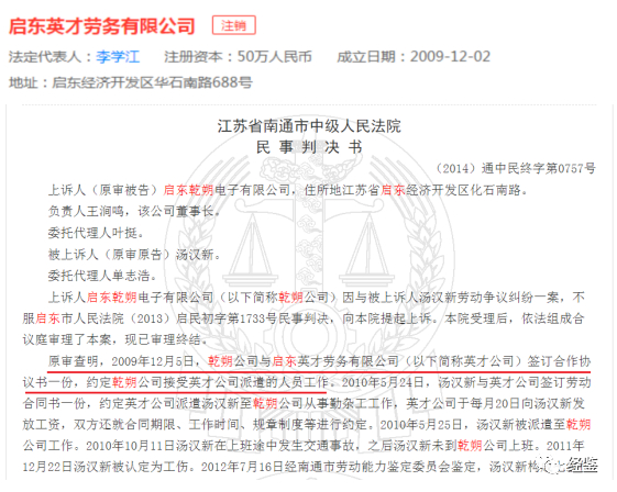 而工商资料显示,李学江2009年注册成立启东英才劳务有限公司,并与当年向启东乾朔派遣劳务,启东英才向启东乾朔派遣劳务,事实上是否构成关联交易?是否存在利益输送等问题?