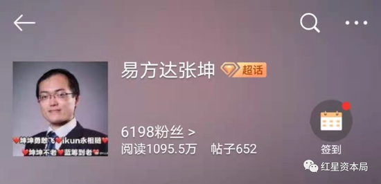 有人为张坤建立了全球后援会,还为他开通了超话。截至发稿,@易方达张坤全球后援会的粉丝已达到1.3万,超话#易方达张坤#的阅读量已经达到1095.5万。