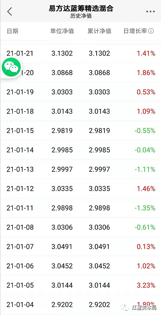 那天——好像是1月20日或是21日,大家看着易方达蓝筹(指张坤管理的基金“易方达蓝筹精选混合”)的收益从平台预估的负数变为了正数,然后一群人个个高呼“坤哥厉害”,于是气氛起来了,一帮人说要给坤哥打Call什么的。