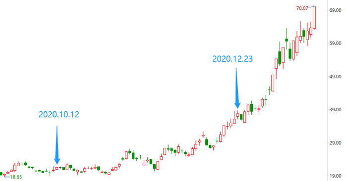 国内电池级碳酸锂底部起涨时间点是2020年10月12日,国内电池级氢氧化锂底部起涨时间点是2020年12月23日。结合天齐锂业的股价走势,可以发现天齐锂业股价大涨的核心驱动因素是锂盐涨价。
