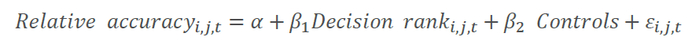 本文的主要变量是为Accuracy、Herding、Reissue和 Rounding,根据先前的研究,作者将分析师的预测精度与过去1年所有分析师对于同个公司的预测精度对比以得到相对预测精度。