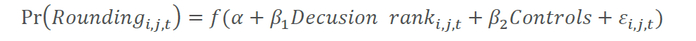 当分析师决策疲劳提升时,分析师可能在其他方面表现出启发式的。本文检验了分析师当天已发布预测数量上升时其是否更有可能给出一个舍入的盈利预测。如以下对数回归模型所示: