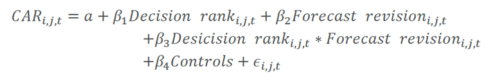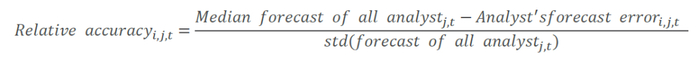 其中 分析师i在日期t对于股票j发布的盈利修正报告后三天的超额收益; 是分析师i在日期t对于股票t发布的前后盈利预测差异的度量。