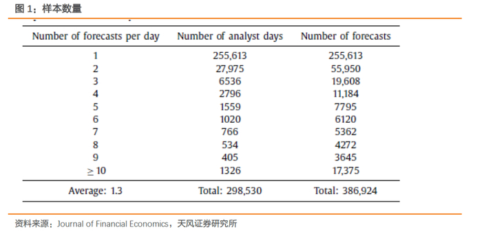 本文所使用的的数据来自于IBES数据量跨越200年至2015年时间区间的分析师盈利预测数据。本文主要聚焦于发布在工作日的适时预测,因此数据样本被限制在工作日上午9点到下午7点之间发布的预测,每个预测被按照当天披露的顺序进行标记。