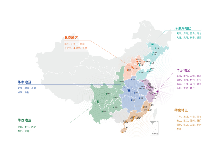 2020年初,远洋集团正式发布五期发展规划,提出全面聚焦开发主业,巩固基本盘,加强南移西拓,重点关注长三角、粤港澳大湾区以及长江中游和西部区域的热点城市圈拓展深耕。因此远洋于年内先后成立北京、环渤海、华东、华南、华中、华西六大事业部。借助“建筑·健康”的核心产品力,远洋集团在多个城市实现良好销售业绩,协议销售额和销售面积均创下历史新高。