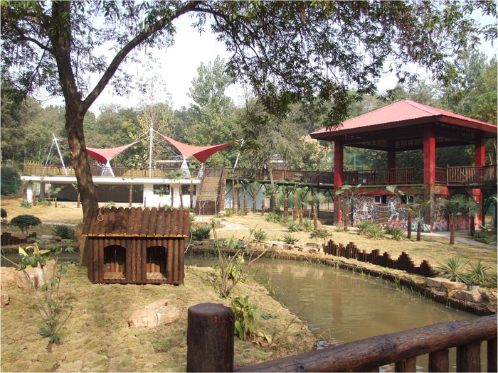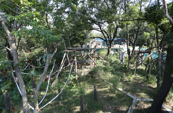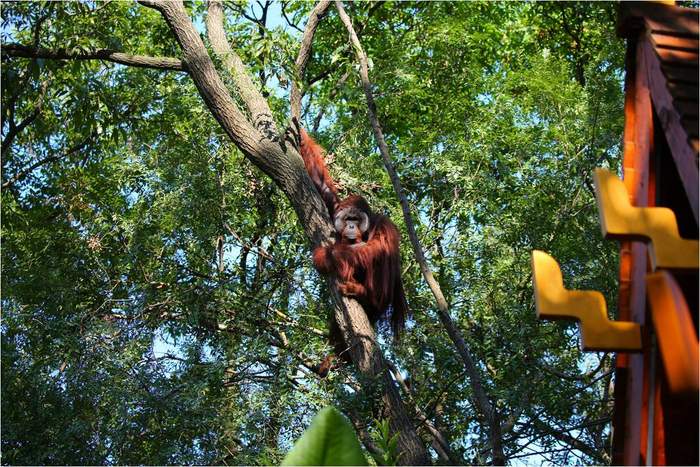 动物园利用红山的森林资源,为猩猩馆的红猩猩们打造了一个运动场。 南京红山森林动物园 图