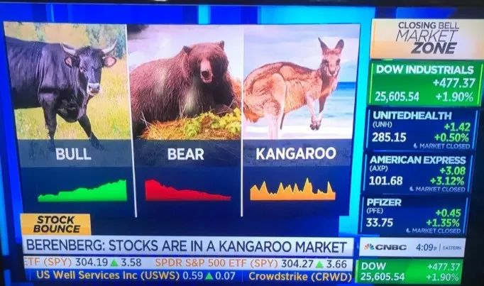 再举个例子,大家都知道势头很好的股市叫牛市,很惨的叫熊市,这群老哥们还发明了一个名词:袋鼠市...