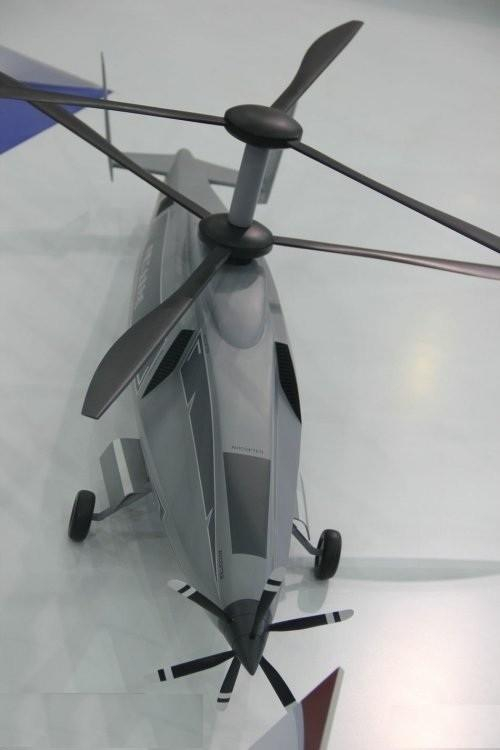 从“绝影-8”模型的细节可一个看出,该机也采用了刚性共轴反桨双旋翼的设计,与“无畏 X”的区别在于,它的推进螺旋桨没有放在机尾,而是放在了机头,一个是“推”,一个是“拉”,而推进螺旋桨也是共轴反桨双旋翼的。
