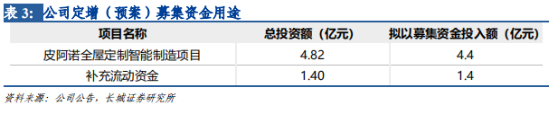 拟募集5.8亿元用于产能扩建。2019年12月4日,公司披露定增预案,拟向不超过10名投资者非公开发行股份不超过3106.8万股(占发行前总股本的20%),拟募集资金不超过5.8亿元,其中4.4亿元用于皮阿诺全屋定制智能制造项目,1.4亿元用于补充流动资金。拟建设的全屋定制智能制造项目位于中山板芙,建成后将实现年产约35万套的全屋定制产品产能,有利于增强产品供给能力,实现区域协调发展。