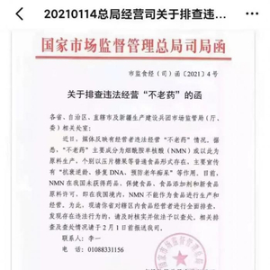 而在近日,国家市场监督管理总局一则《关于排查违法经营“不老药”的函》将NMN(烟酰胺单核苷酸)直接打落神坛。该文件指出,目前NMN在我国未获得药品、保健食品、食品添加剂和新食品原料许可,即在我国境内,NMN不能作为食品进行生产和经营。目前阶段,NMN产品并未经过大量人群的临床试验;电商平台售卖的NMN产品,多数只是美国FDA等认证的膳食补充剂。