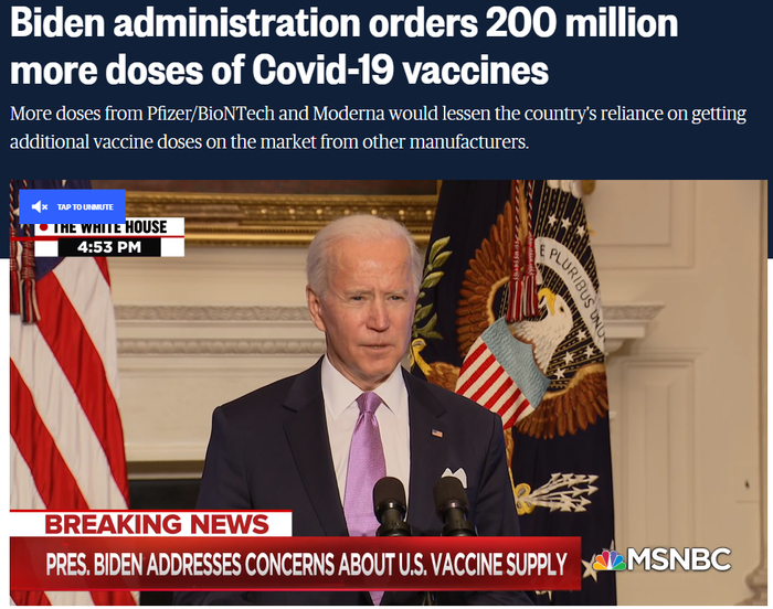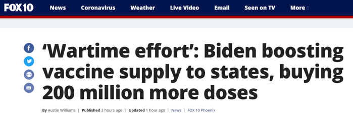 1、拜登政府增购2亿剂疫苗 强调:“这是战时努力!”