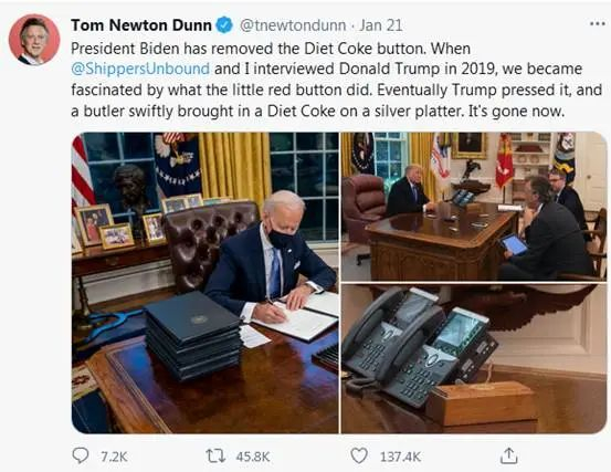 5、“红色按钮”重返白宫椭圆形办公室?曾被特朗普用来点可乐