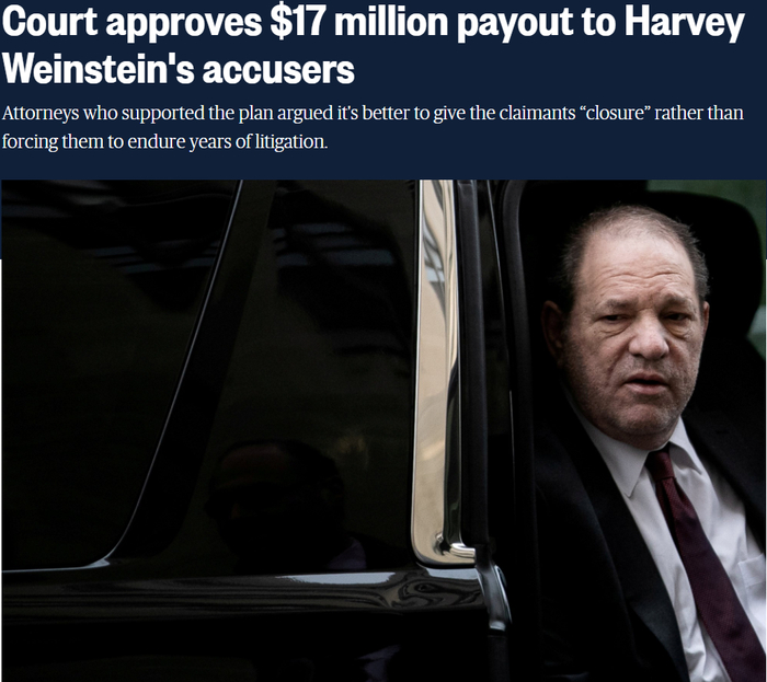 4、韦恩斯坦公司完成破产清算,性骚扰受害者获1700万美元赔偿