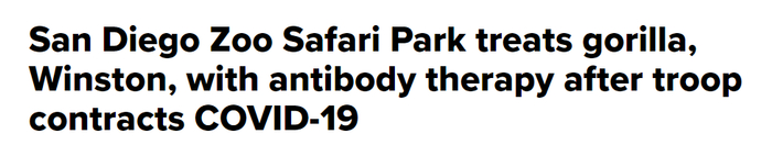 大猩猩“温斯顿”1月11日粪便检测结果为阳性,它是被一位新冠无症状工作人员传染的,尽管这位感染者当时戴了手套。这是首个新冠肺炎自然传染给灵长类动物的确诊病例。