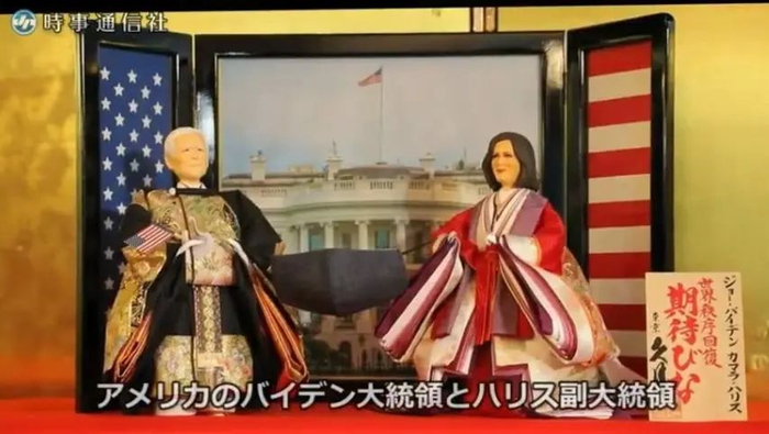 9、日本推出拜登、哈里斯人偶:身着和服 手持口罩